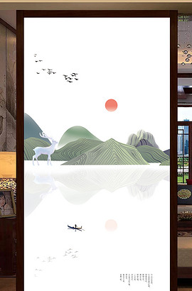 麋鹿中式山水孤舟意境风景画玄关竖幅背景墙装饰画 玄关 原文链接:https://www.zuotuwang.com/decoration/hallway/10.html,转载请注明出处。 中式孤舟山水意境玄关竖幅背景墙装饰画风景麋鹿