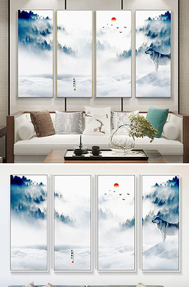 意境风景新中式四联背景墙山水红日狼飞鸟长方形装饰画 装饰画 原文链接:https://www.zuotuwang.com/decoration/paintings/4.html,转载请注明出处。 中式四联山水意境狼红日背景墙装饰画长方形风景飞鸟